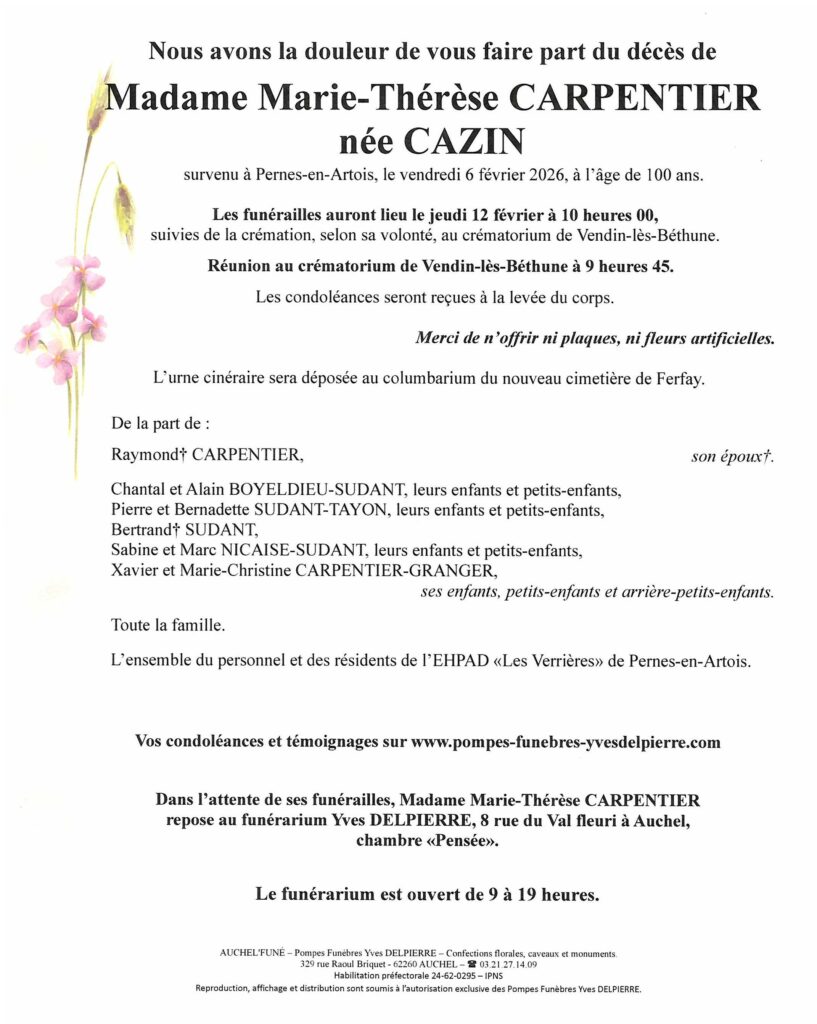 Madame Marie-Thérèse CARPENTIER née CAZIN