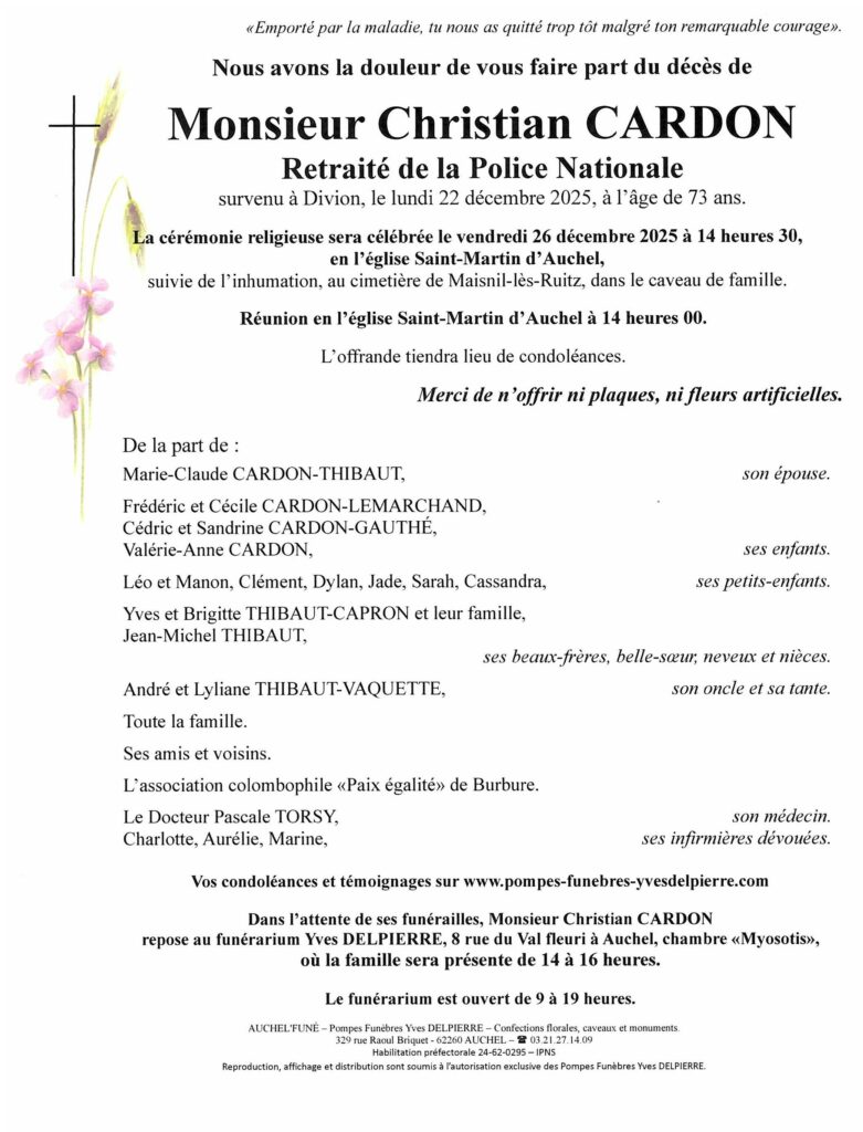 La modération des messages est laissée à la libre appréciation du modérateur et à la famille. Votre message sera publié après modération.