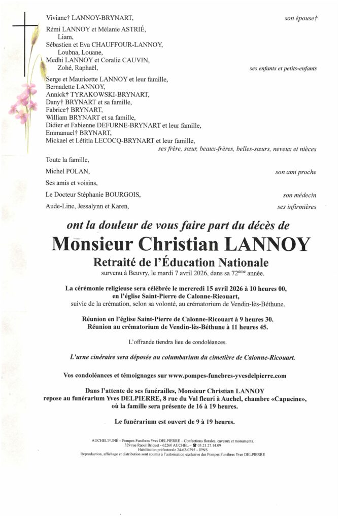 4. Je vous presente mes sincères condoléances a toutes la famille et bon courage a vous repose en paix Christian tu es parti rejoindre ton epouse bisous volant de la part du club café seniors calonne ricouart