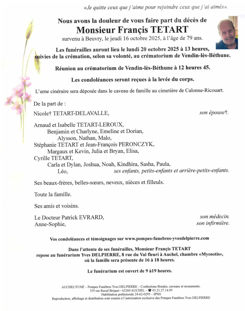 Je vous présente Mme Tetart Stephanie ainsi que vos proches mes sincères condoléances.