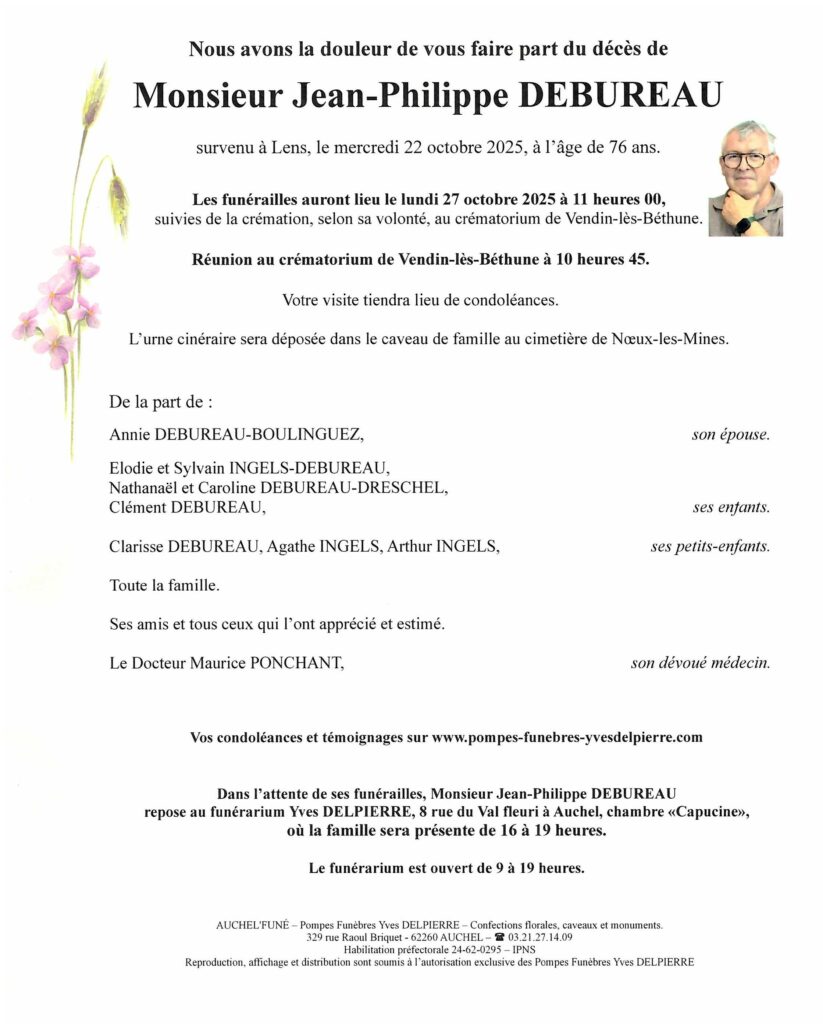 Emus par la disparition de Monsieur DEBUREAU, Gladys et Paul RABIER s’associent de tout coeur à la douleur de la famille, des proches et des amis en leur présentant des sincères condoléances.