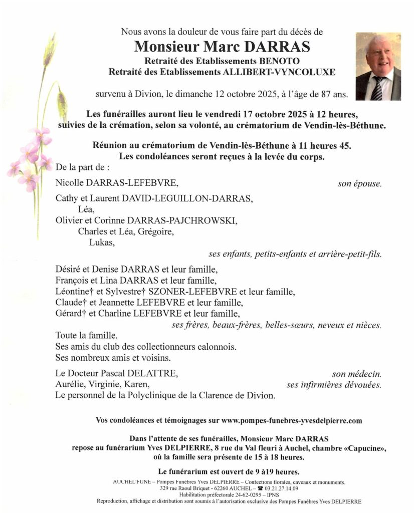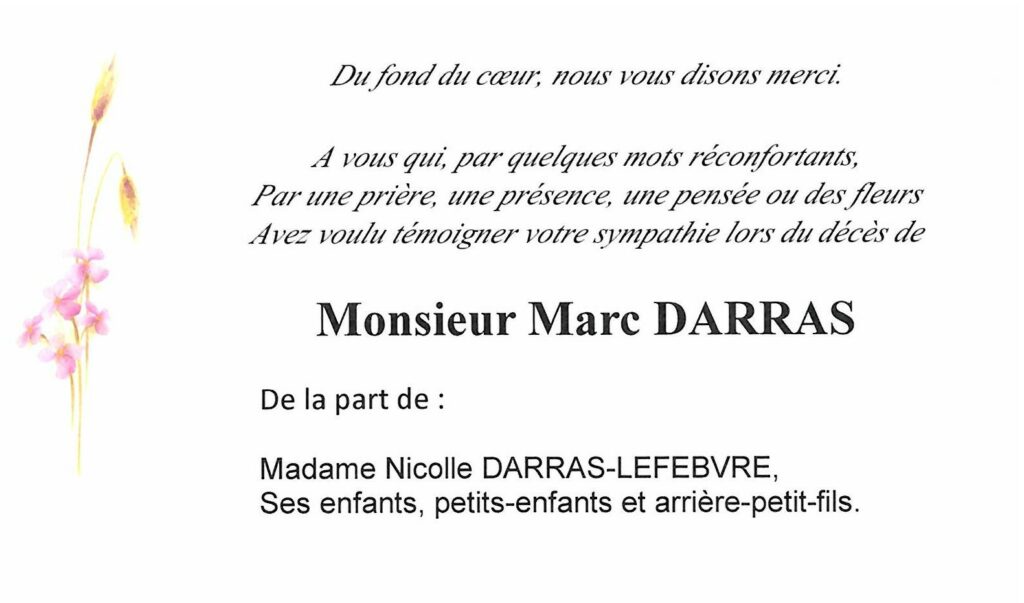 C’est avec une très grande tristesse que j’ai appris le décès de Monsieur Darras .En ces moments difficiles, je tiens vous faire part de mes plus sincères condoléances.
